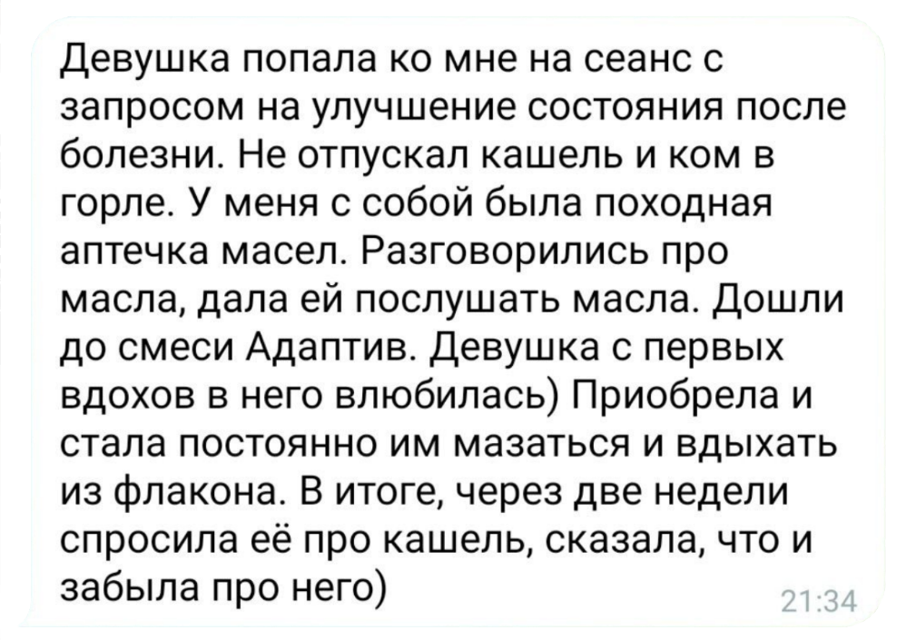 Помимо этого, если вы специалист, который занимается оздоровлением людей, то ароматерапия станет одним из ключевых инструментов в нашей профессии за счет простоты использования и впечатляющего быстрого результата у клиента. Поэтому если вы нутрициолог, диетолог, психолог, массажист, телесный терапевт, остеопат, натуропат, специалист аюрведы, тренер и другие специалисты из смежных сфер, приходите на курс и получите эффективный инструмент в свой профессиональный арсенал.